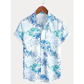 2pcs Men's Leaf Print Hawaiian Shirt and Drawstring Shorts Set - Casual Summer Outfit