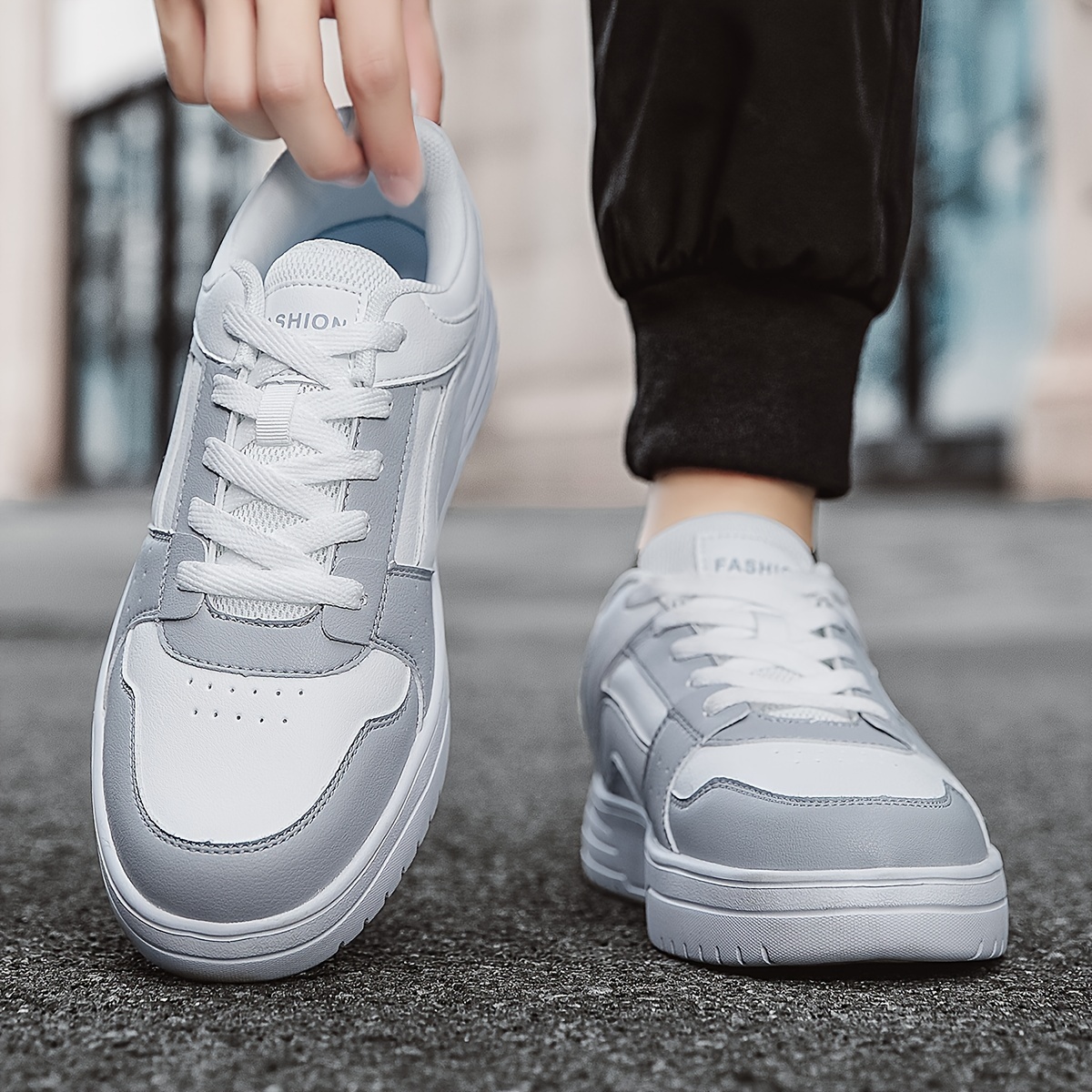 All-Season Men's Solid Skate Shoes: Non-Slip, Durable & Comfortable with Stylish Lace-Up Design for Outdoor Activities