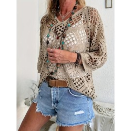 Chic Plus Size Solid Knitted Top with Button Front - Soft Half Sleeve Collar Shirt for Spring & Summer - Trendy Patched Pocket Design - Casual Womens Clothing