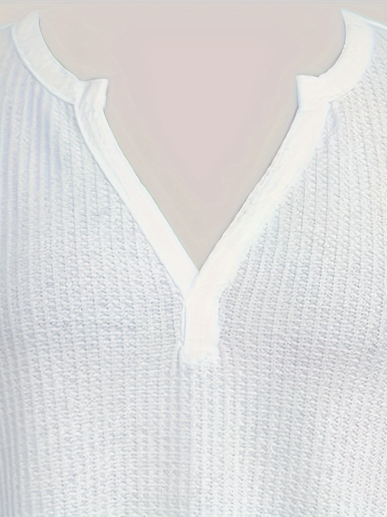 Plus Size Basic Knit Top, Women's Plus Solid Long Sleeve Notched Neck Knit Top