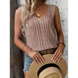 Plus Size Soft Cable Knit Tank Top - Comfortable Sleeveless V Neck for Curvy Women - Versatile Solid Color, Perfect for Spring & Summer Wardrobe