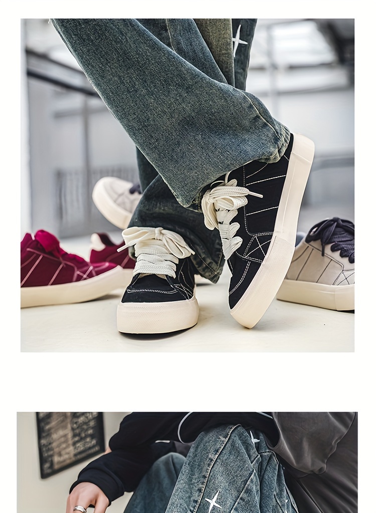 Men's Trendy Lace Up Low Top Casual Walking Street Wandering Campus For Students Teenager Youth, Outdoor, All Seasons