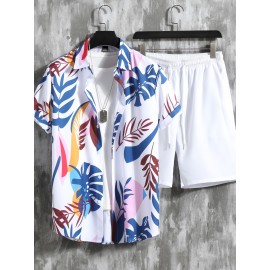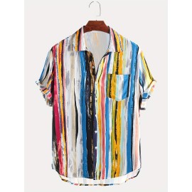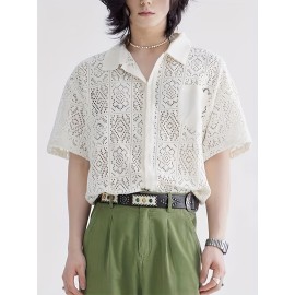 Men's Stylish Loose Car Graphic Print Trachten Shirt, Casual Breathable Lapel Button Up Short Sleeve Shirt For Summer Outdoor Activities