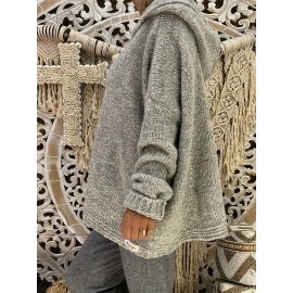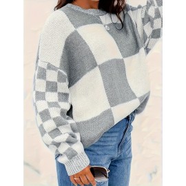 Plus Size Solid Mock Neck Sweater, Casual Long Sleeve Sweater For Fall & Winter, Women's Plus Size Clothing