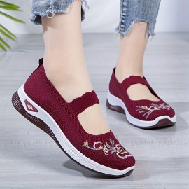 Women's Solid Color Comfy Shoes, Ankle Band Soft Sole Platform Slip On Casual Shoes, Low-top Walking Shoes