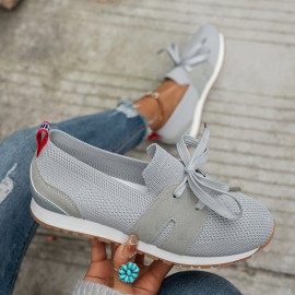 Women's Solid Color Flat Shoes, Breathable Mesh Slip On Shoes, Lightweight & Comfortable Shoes